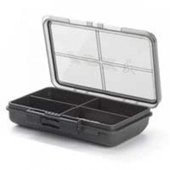 Esta caja integral tiene cuatro compartimentos iguales y cabe en una F-Box Mediana y Grande. Perfecto para almacenar material más grande, como clips de seguridad, gomas traseras y tubos termorretráctiles. La caja tiene una tapa impermeable, bisagras de larga duración y un cierre deslizante fiable.